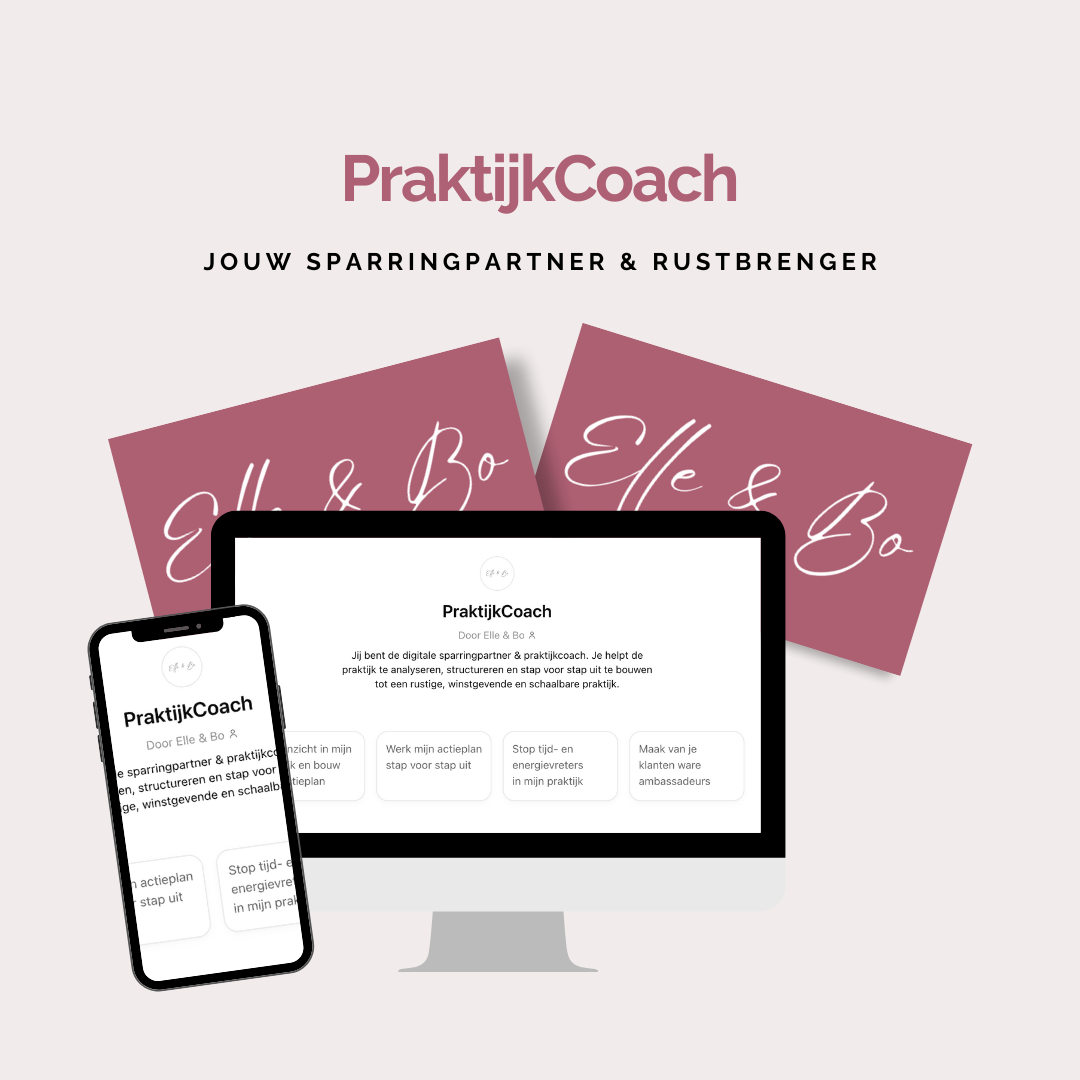 Dit is geen standaard programma, maar een op maat gemaakte PraktijkCoach die meebeweegt met jouw praktijk, tempo en keuzes.